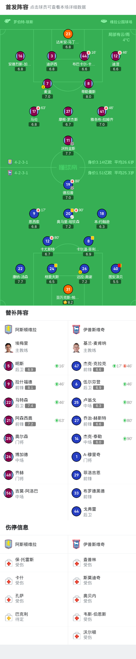 此役比赛中,球队的阵容和技术统计都展现出了各自的特点和优势。维拉在禁区内的传球和射门表现出色,而伊普斯维奇则在控球和传递方面有着一定的优势。比赛的过程中,双方都展现出了一定的实力和水准,比赛结果也在一定程度上展示了双方球队的实力对比。